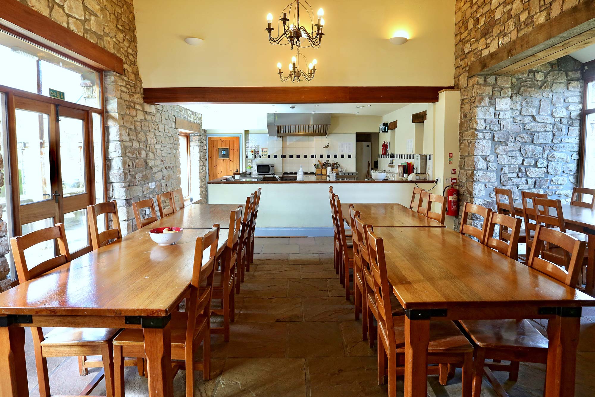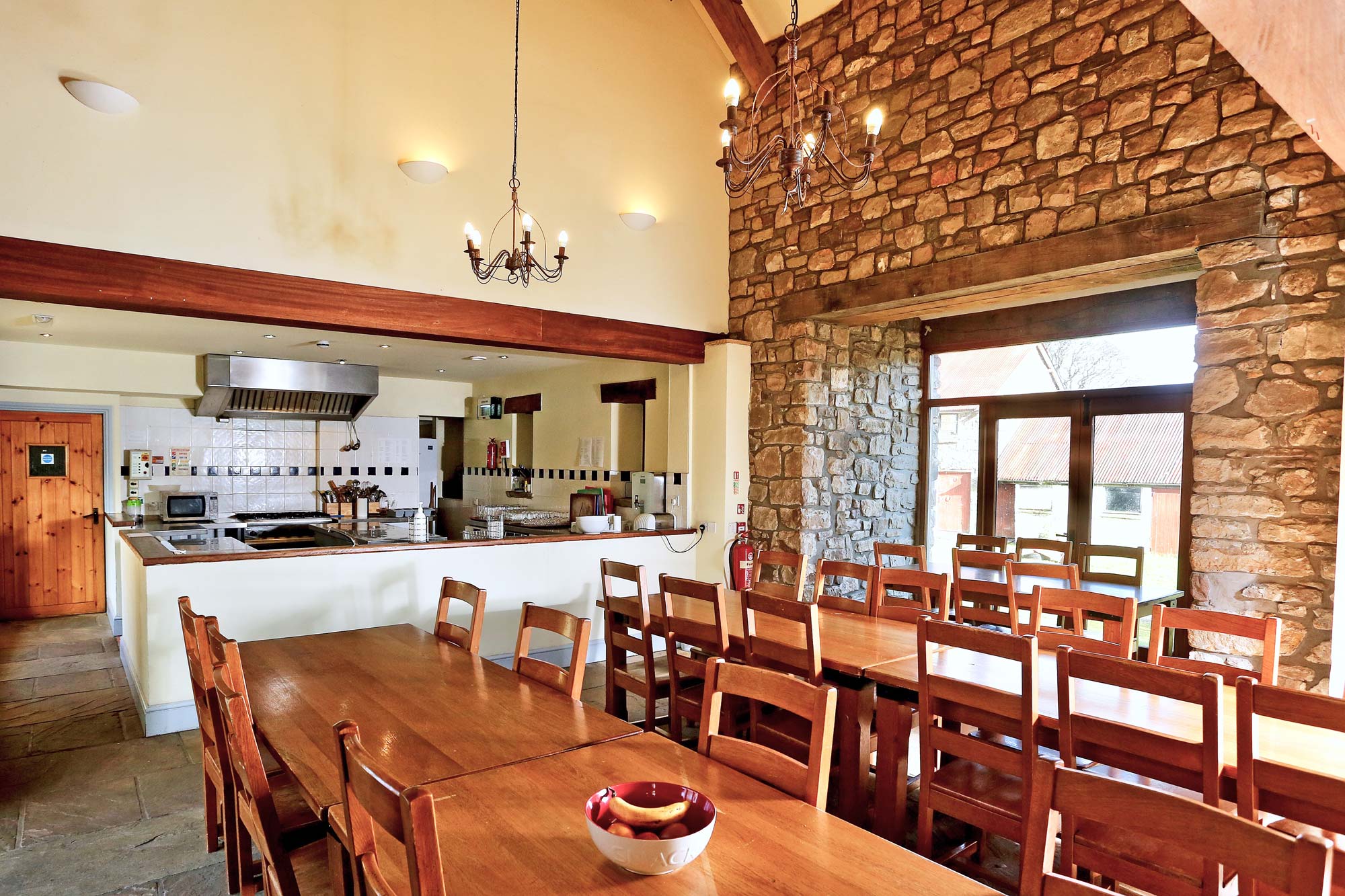 We are a self catering facility with a high quality commercial kitchen suited to both large and small groups, families and individuals. There is a spacious living area and a superb space outside.